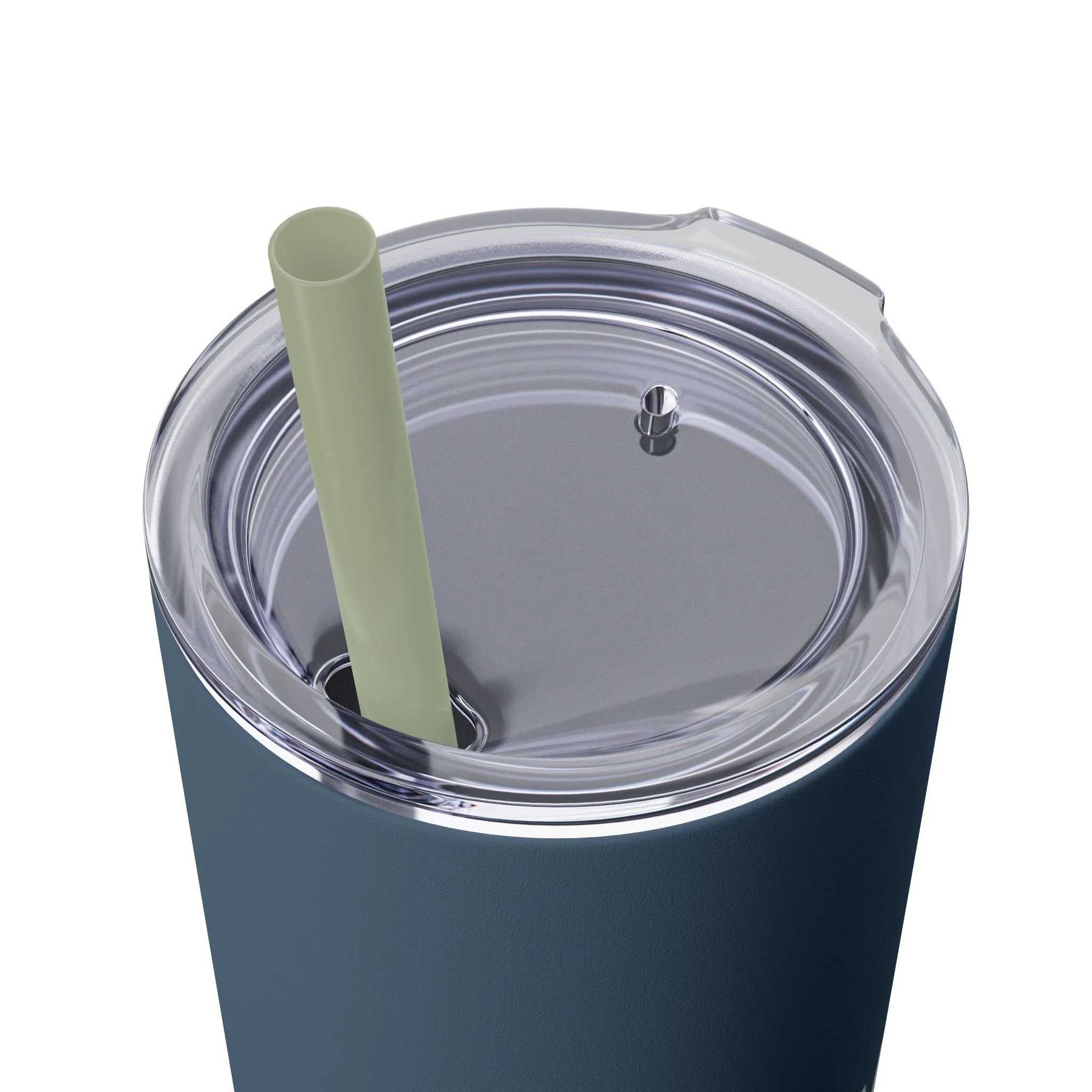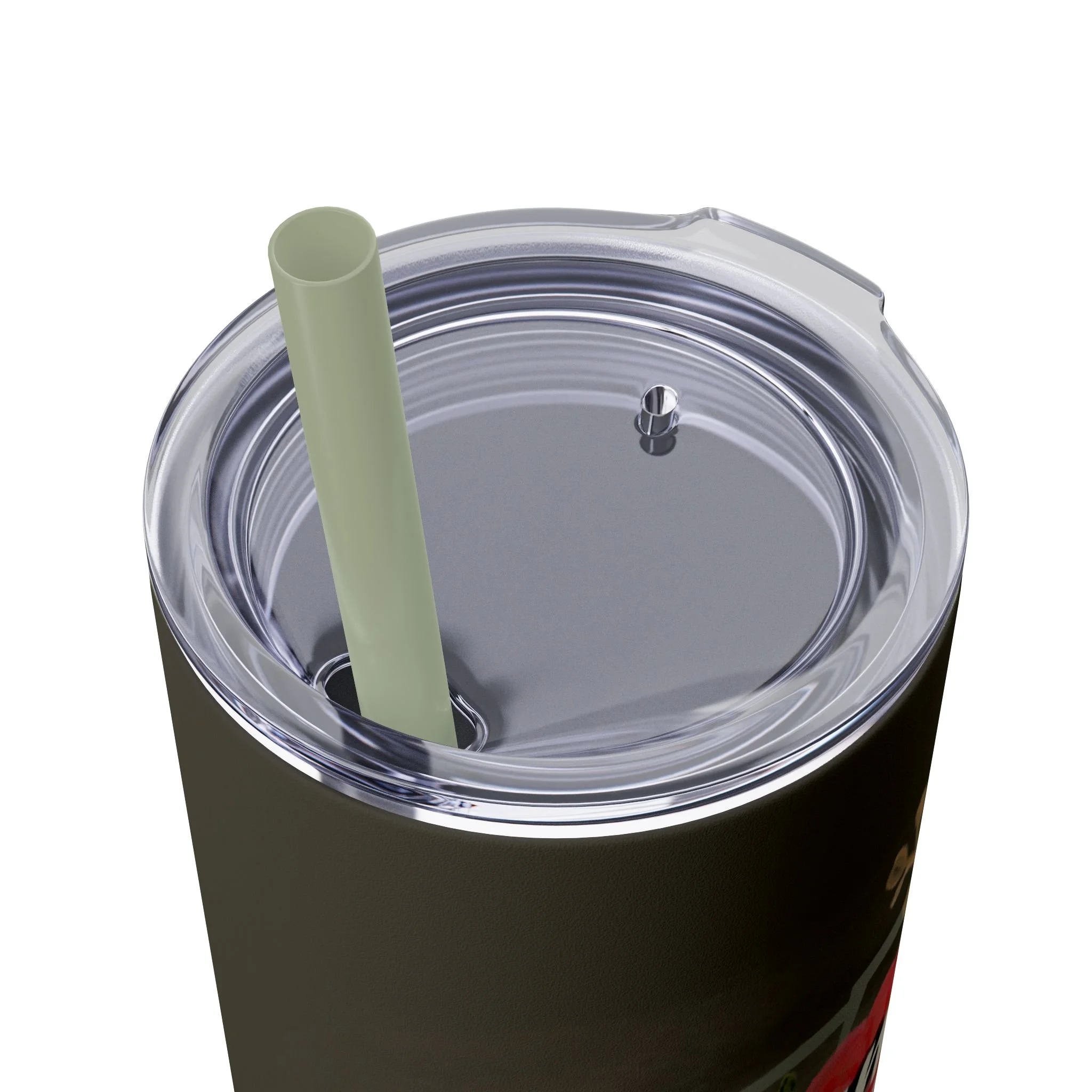 - Plastic press-on lid with color-matching straw